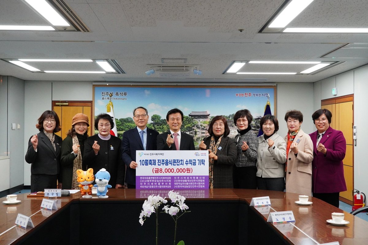 이번 기탁은 지역사회에 나눔을 실천하고자 하는 8개 여성단체들의 뜻을 모아 ‘진주음식큰잔치’에서 얻은 수익금의 일부로 마련됐다.