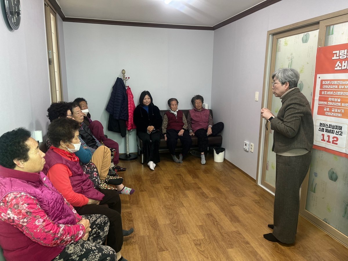 이번 교육에서는 △떴다방·불법 방문판매 △무료체험·경품 제공 후 강매 △통신·상조·의료기기 판매 피해 △보이스피싱·스미싱 등 노인들에게 실제 발생 빈도가 높은 소비피해 사례를 중심으로 교육하고, 계약취소 및 환급 등 분쟁 해결 절차도 함께 안내한다.