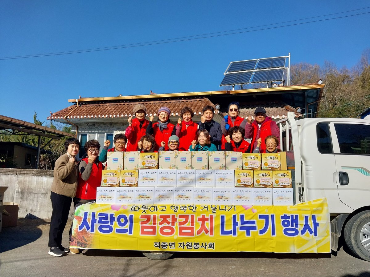 한편, 적중면 자원봉사회는 김장 나누기, 반찬 배달, 취약계층 지원 등 꾸준한 봉사활동을 통해 지역 사회에 온기를 전하는 든든한 나눔 공동체로 자리매김하고 있다.