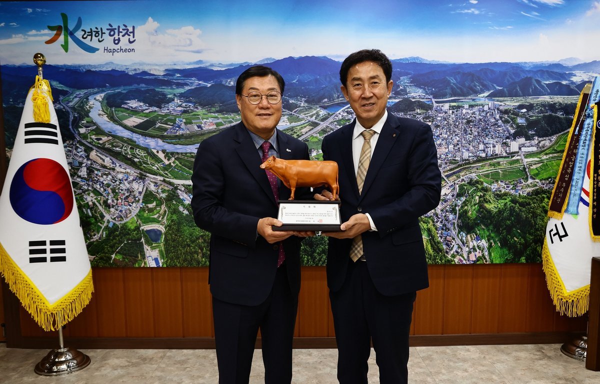 [한국Q뉴스] 합천축산업협동조합은 10일 합천군을 방문해 합천군 농업기술센터 신청사 개청을 축하하며, 축산 홍보 및 현장 교육에 활용될 한우 모형을 기증했다.