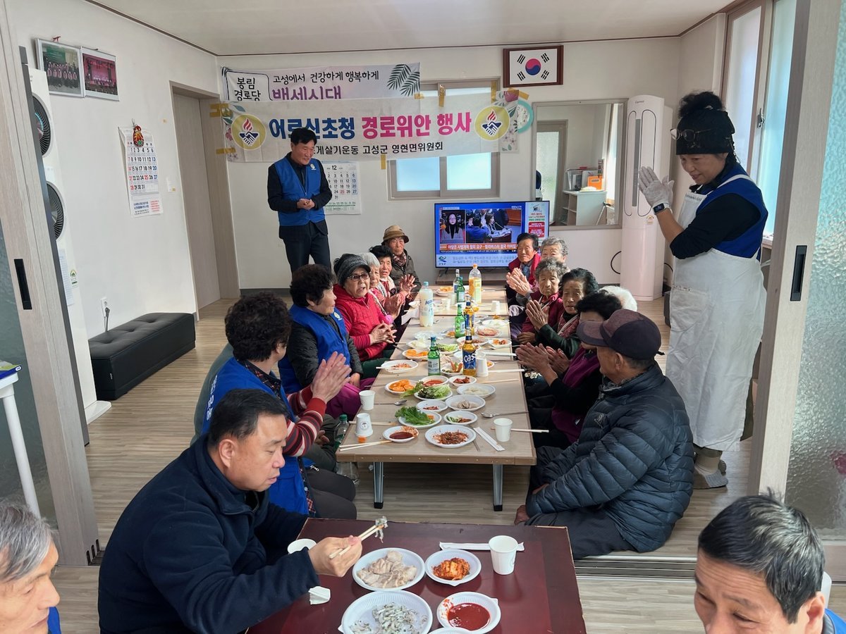 [한국Q뉴스] 고성군 영현면 바르게살기위원회는 12월 10일, 봉림마을경로당에서 취약계층 어르신과 마을주민 등 30여 명을 모시고 사랑의 점심 봉사를 펼쳤다.