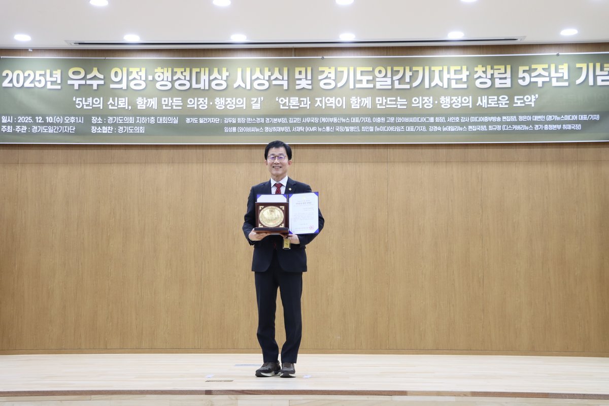 한편 ‘2025년 우수 의정·행정 대상’은 언론보도 실적, 조례 발의 건수, 선호도 등 평가 지표를 기반으로 경기도일간기자단 회원 및 외부심사위원의 심사를 거쳐 선정됐다.