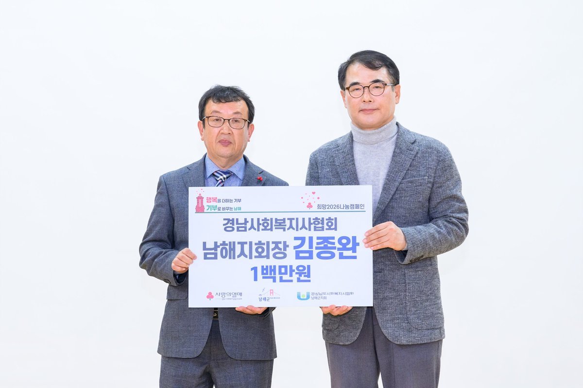 [한국Q뉴스] 남해군은 연말을 맞아 이웃을 위한 따듯한 나눔이 이어지며, ‘희망 2026 나눔 캠페인’이 지역사회 전반으로 확산되고 있다고 밝혔다.