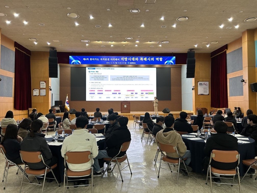 [한국Q뉴스] 창원특례시는 15일 시청 시민홀에서 ‘2025년 제6차 찾아가는 자치분권 아카데미 특강’을 개최했다.