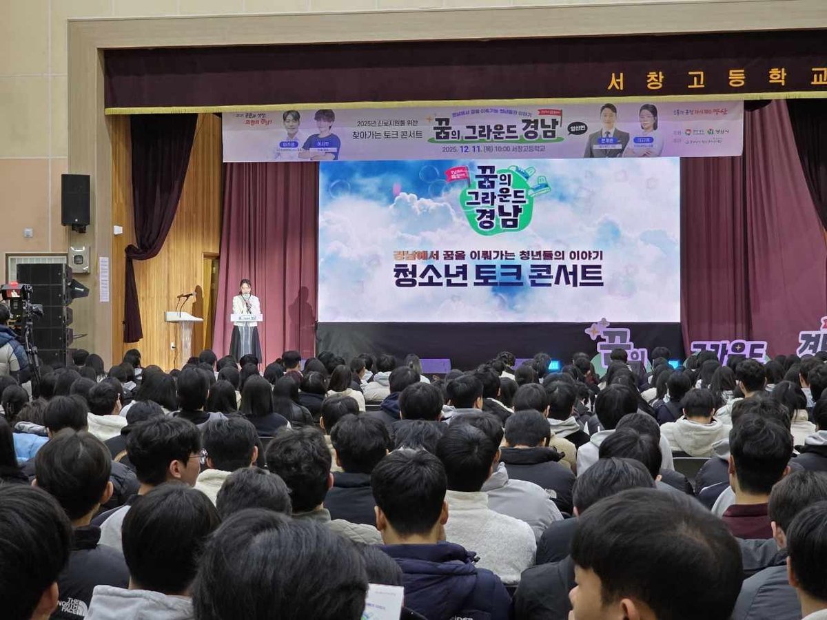 [한국Q뉴스] 양산시와 경상남도는 지난 11일 경상남도청소년지원재단과 함께 서창고등학교 실내체육관에서 청소년 300여명이 참여한 가운데 ‘2025년 진로지원 찾아가는 토크콘서트’를 개최했다.