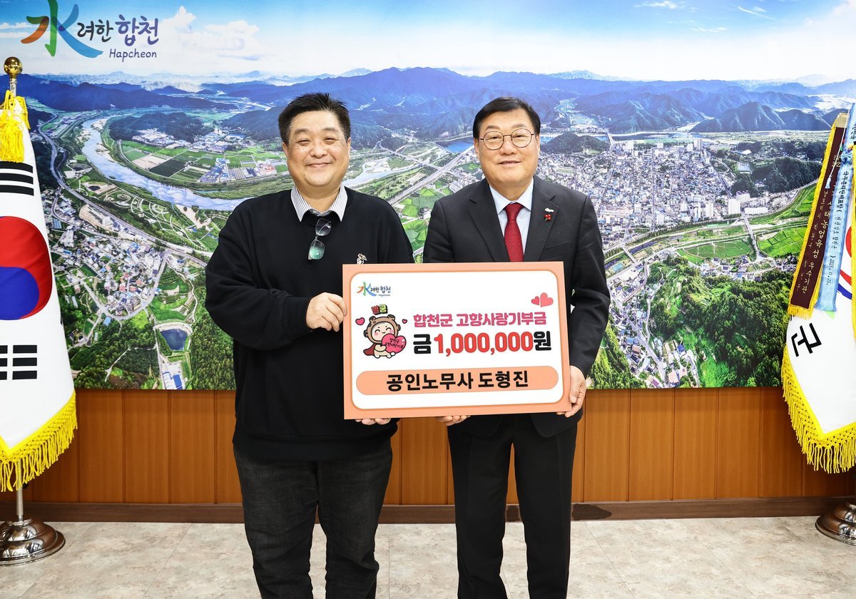 김윤철 합천군수는 “공직 경험을 바탕으로 군정 발전에 지속적으로 힘을 보태주고 계신 도형진 노무사님의 따뜻한 나눔에 깊이 감사드린다”며 “군민과 출향인의 관심과 참여가 합천의 미래를 여는 중요한 동력이 되고 있다”고 말했다.