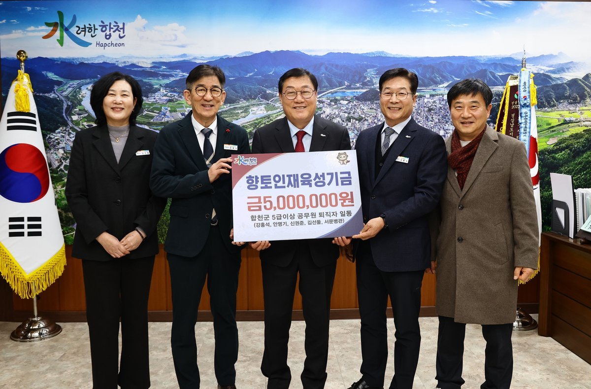 퇴직자 일동은 “공직에 재직하는 동안 지역 인재 육성의 중요성을 누구보다 절감해 왔다”며 “새롭게 출범한 인재육성재단이 지역 교육 발전의 구심점 역할을 하기를 바라며, 합천의 학생들이 더 나은 환경에서 학업과 진로를 준비하는 데 작은 힘이나마 보태고 싶었다”고 전했다.