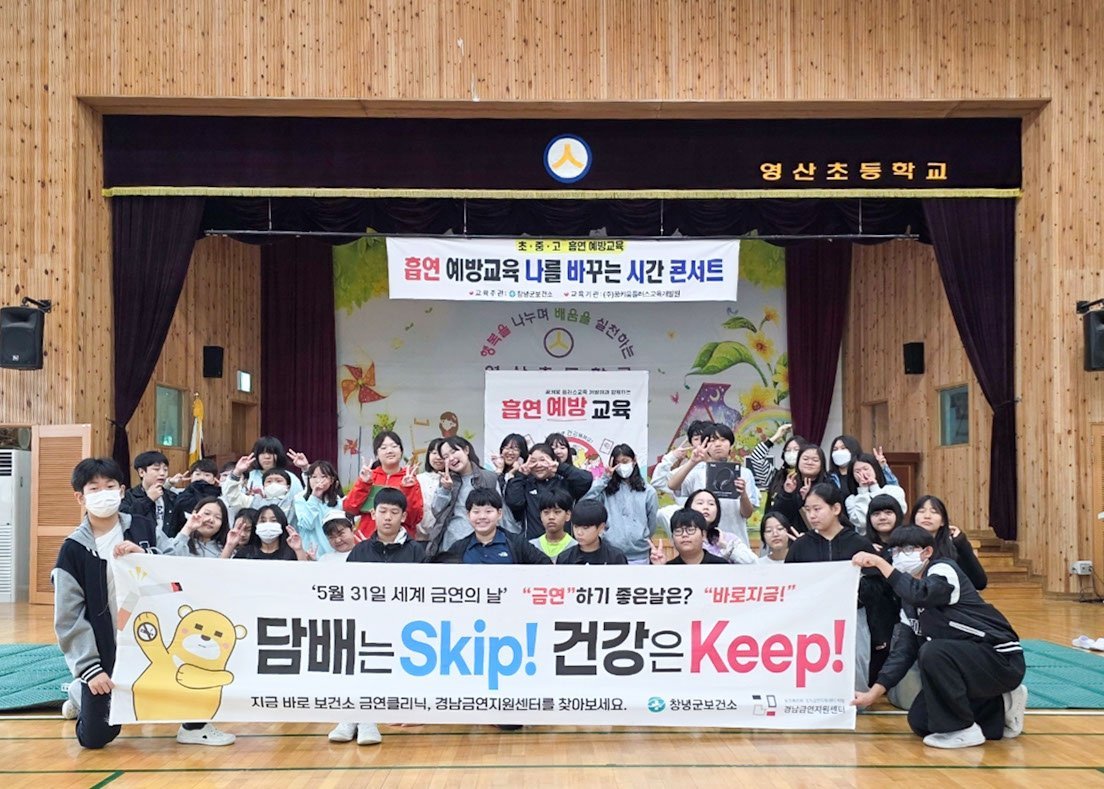 [한국Q뉴스] 창녕군은 지난 10월부터 2개월간 관내 어린이와 청소년을 대상으로 흡연 예방과 금연 실천을 유도하기 위한 ‘금연 나바시 콘서트’를 운영했다고 밝혔다.