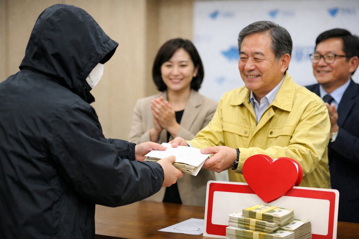 [한국Q뉴스] 축동면 상탑 마을에 거주하는 익명의 기부자가 지난 15일 축동면행정복지센터에 이웃돕기 성금 100만원을 기탁했다.