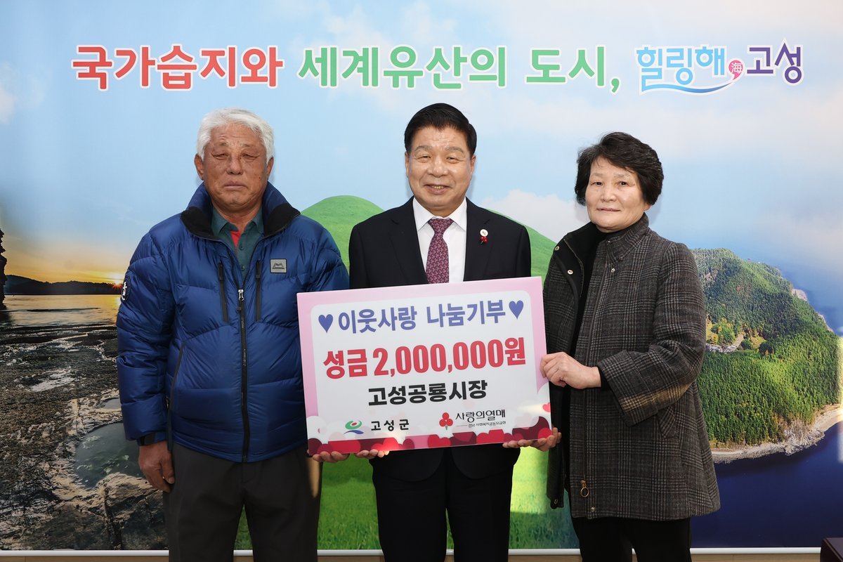 [한국Q뉴스] 고성군은 12월 17일 고성공룡시장 상인회에서 연말연시 지역의 어려운 이웃을 위해 성금 200만 원을 기탁했다고 밝혔다.