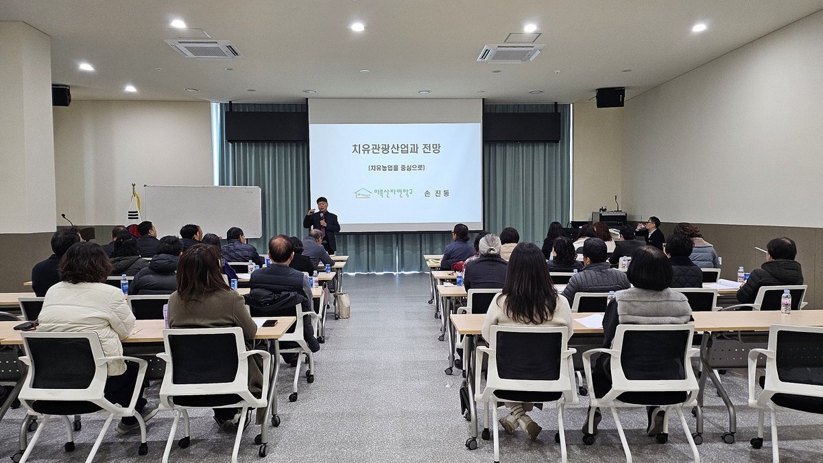 손대표는 내년부터 시행될 치유관광산업 육성에 관한 법률 제도화에 따른 농촌자원을 활용한 치유관광산업의 전망을 예측하고, 치유농업과 관광자원의 융복합을 통한 지속가능한 치유산업 발전방향에 대해 심도있는 강의를 펼쳤다.