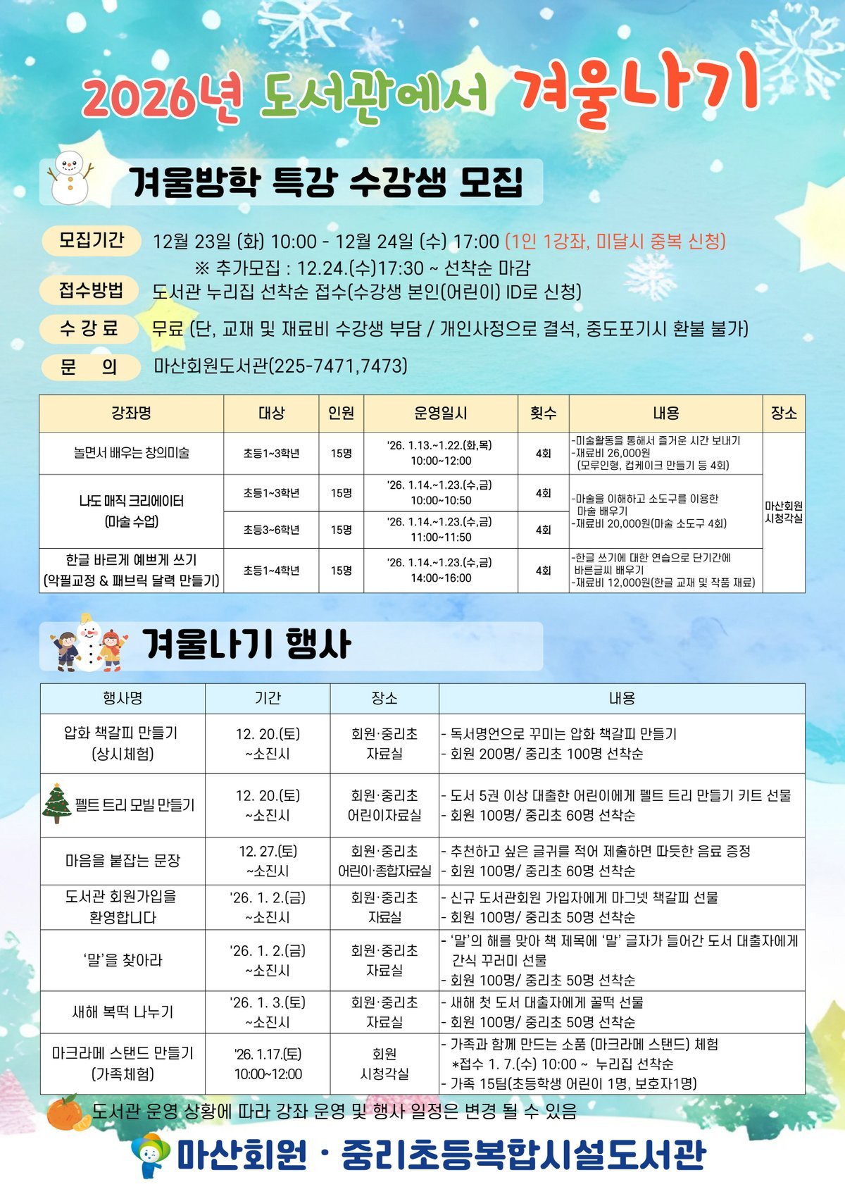 이승룡 도서관사업소장은 “2026년에도 시민이 추천하고 함께 선택한 창원의 책으로 선포식, 독서릴레이팀 운영, 독후감 전국 공모전 등 ‘책 읽는 창원’의 다양한 독서 문화 행사를 함께 할 예정이다”며, “2026 창원의 책 선정에 시민 여러분의 많은 관심과 참여를 바란다”고 전했다.