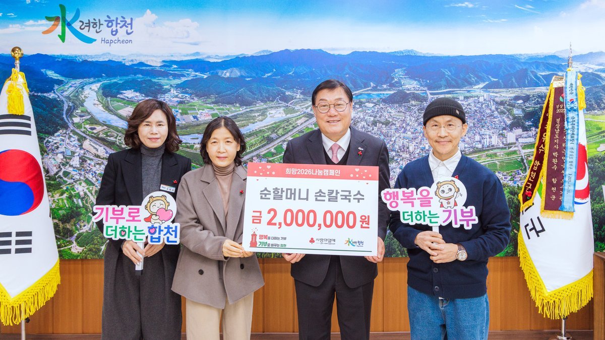 한편 합천군은 2025년 12월 1일부터 2026년 1월 31일까지 희망2026나눔캠페인 이웃돕기 성금 집중 모금 기간을 운영하고 있다.