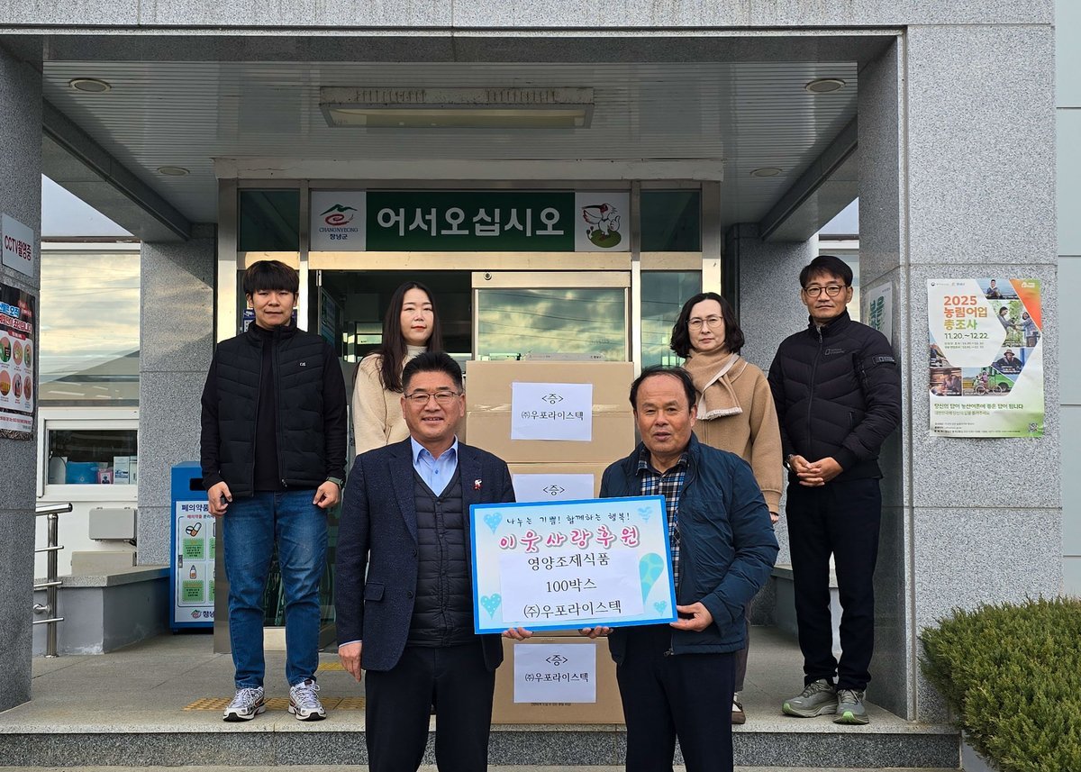 이상용 유어면장은 “이웃 나눔을 실천해 주신 ㈜우포라이스텍에 감사드린다”며 “전해주신 영양조제식품은 관내 어려운 이웃들에게 정성껏 전달하겠다”고 전했다.