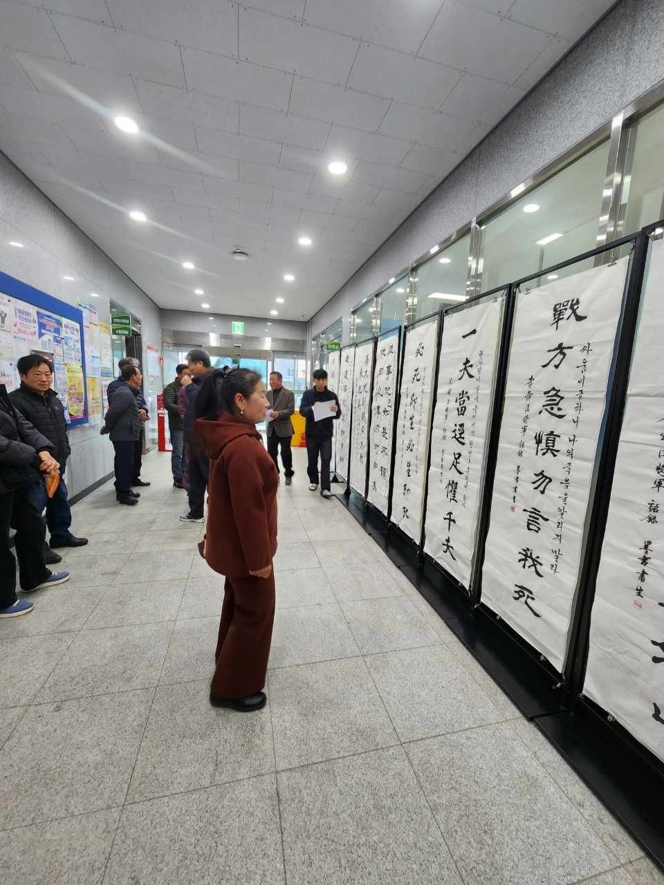 [한국Q뉴스] 고성군 회화면에서 활동 중인 서예동아리 묵향서예교실이 지난 12월 19일, 회화면사무소 1층 공용 공간에서 회원들의 서예 작품을 전시하며 한 해 동안의 배움과 성과를 주민들과 나누는 뜻깊은 시간을 가졌다.