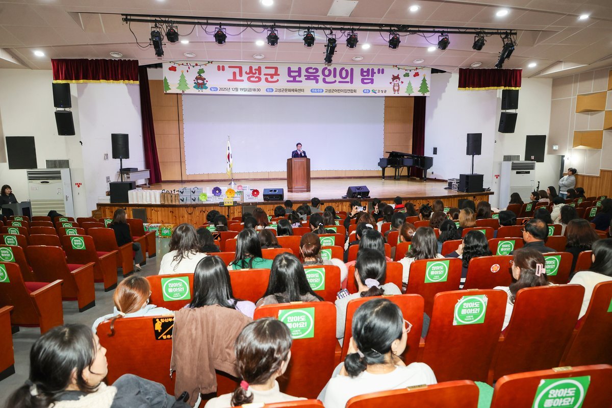 [한국Q뉴스] 고성군은 12월 19일 고성군 문화체육센터 공연장에서 관내 보육 교직원들의 사기진작과 노고를 격려하기 위해 2025년 고성군 보육인의 밤 행사를 개최했다.
