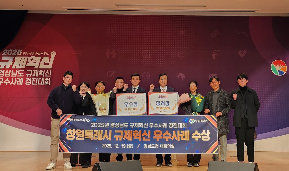 [한국Q뉴스] 창원특례시는 19일 경상남도가 주관한 ‘2025년 경상남도 규제혁신 우수사례 경진대회’에서 우수상과 장려상을 각각 수상했다고 밝혔다.