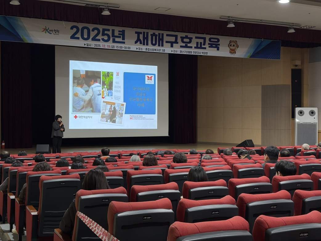 [한국Q뉴스] 합천군은 19일종합사회복지관 3층 대강당에서 공무원과 자율방재단을 대상으로 ‘2025년 재해구호교육’을 실시했다.