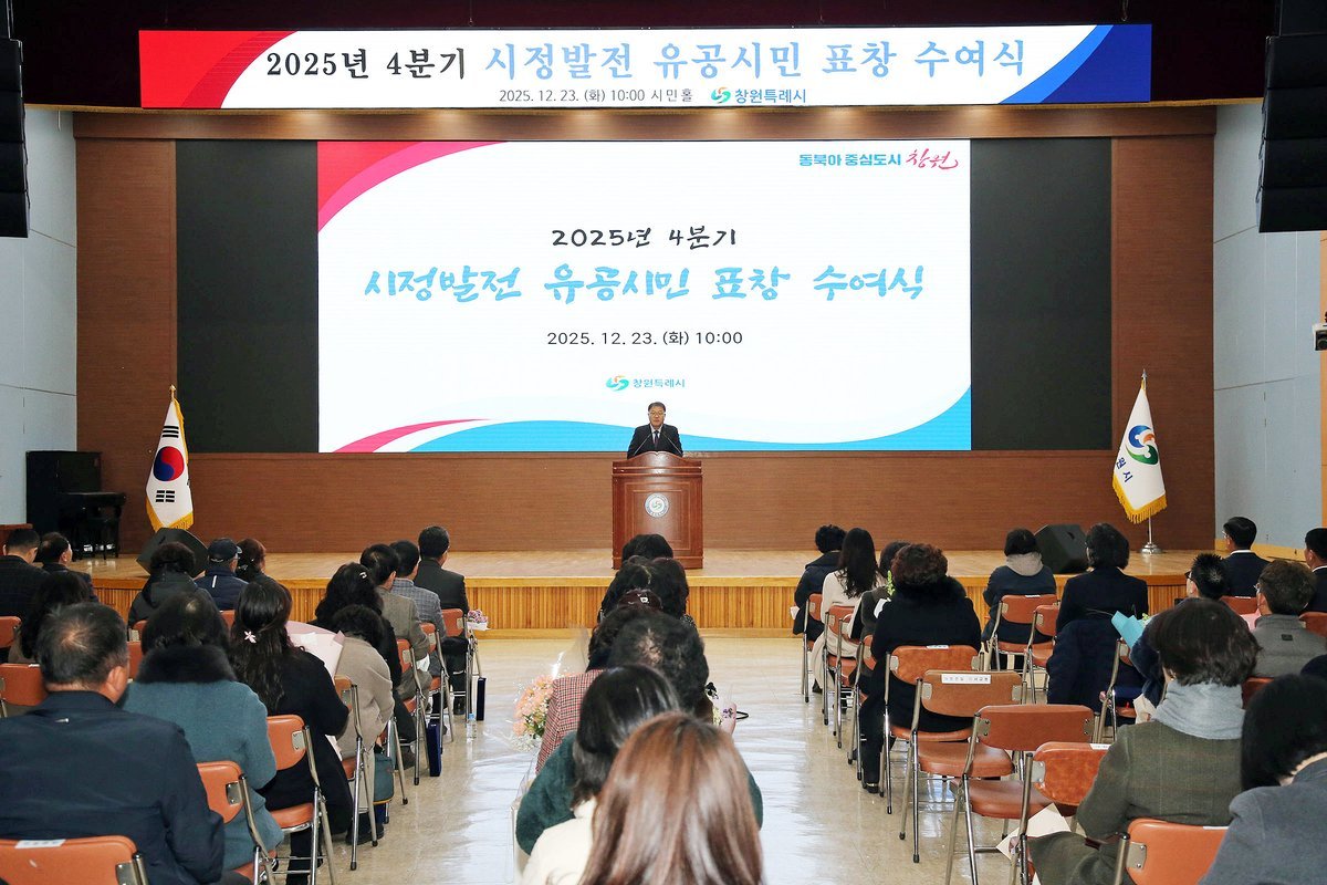 [한국Q뉴스] 창원특례시는 23일 시청 시민홀에서 ‘2025년도 4분기 시정발전 유공시민 표창 수여식’을 개최했다.