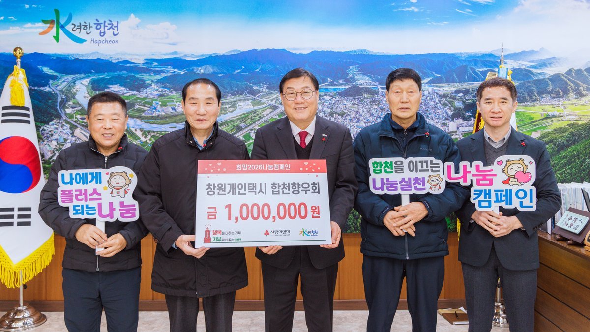 이날 진행된 성금 전달식에는 창원개인택시 합천향우회에서 강시조 회장 등 3명이 참석해 100만원을 기탁했다.