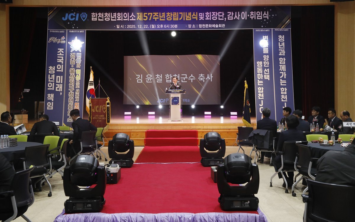 김윤철 합천군수는 축사를 통해 “합천JC가 지난 57년간 지역사회의 든든한 청년 리더로서 역할을 해온 것처럼, 앞으로도 끊임없는 자기계발과 봉사를 통해 합천 발전에 중추적인 역할을 해주길 기대한다”고 밝혔다.