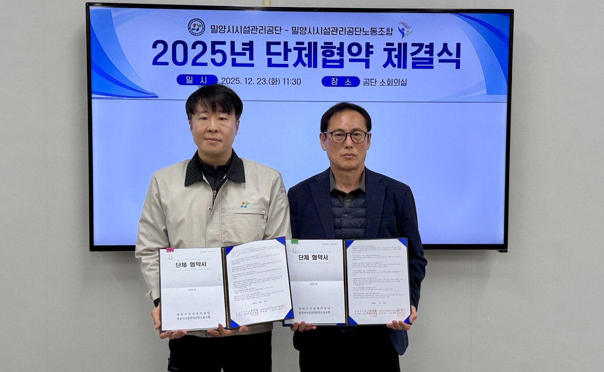 [한국Q뉴스] 밀양시시설관리공단은 23일 밀양시시설관리공단 노동조합과 2025년도 단체협약을 체결했다.