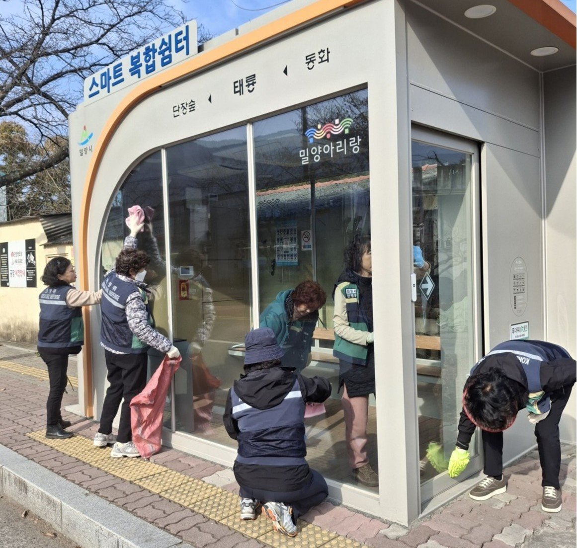 [한국Q뉴스] 밀양시 단장면 여성민방위기동대는 23일 대원 10여 명이 참여한 가운데 지역 내 스마트 복합 쉼터와 버스정류장 등 공공시설을 중심으로 새해맞이 환경정비 활동을 펼쳤다.