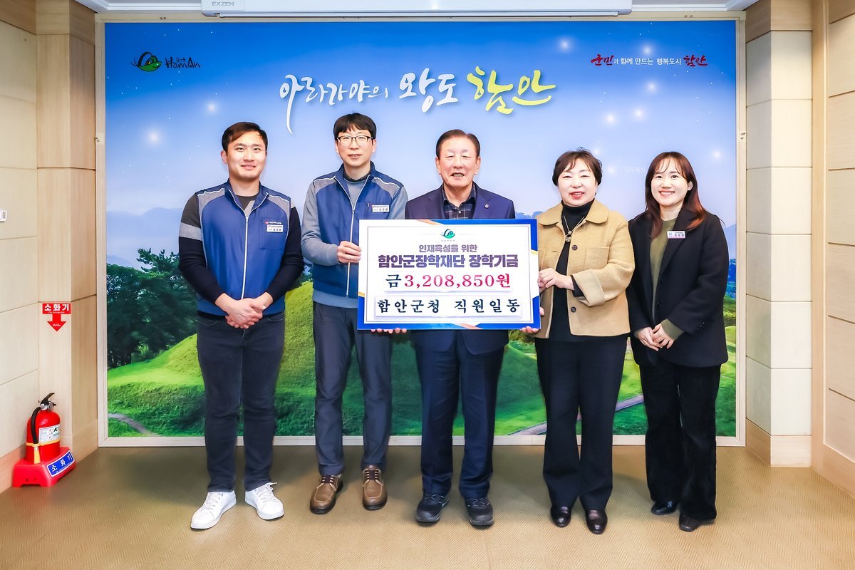 [한국Q뉴스] 함안군은 지난 23일 조주환 전국공무원노동조합 함안군지부 지부장이 군청 직원들이 1년 동안 모은 급여 자투리 320만 8850원을 함안군장학재단에 기탁했다고 밝혔다.