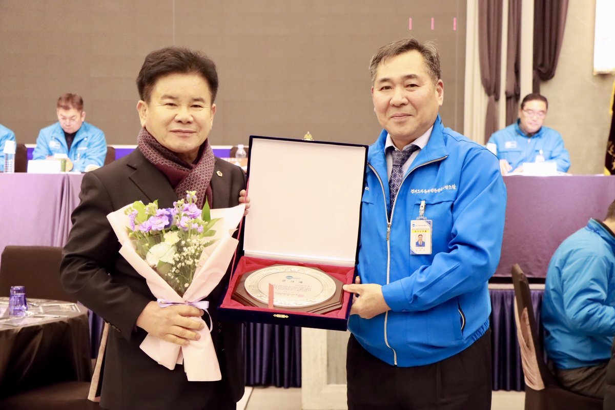 [한국Q뉴스] 경기도의회 건설교통위원회 문병근 의원이 23일 경기도자 동차전문정비사업조합이 개최한 ‘2025년도 대의원 총회 및 송년의 밤’행사 에서 조합으로부터 감사패를 받았다 조합은 문병근 부위원장이 평소 현장 정담회 등을 통해 자동차정비업계의 애로사항을 청취하고, 제도 개선과 정책 지원 방안 마련에 주도적인 역할을 해 온 점을 높이 평가했다.