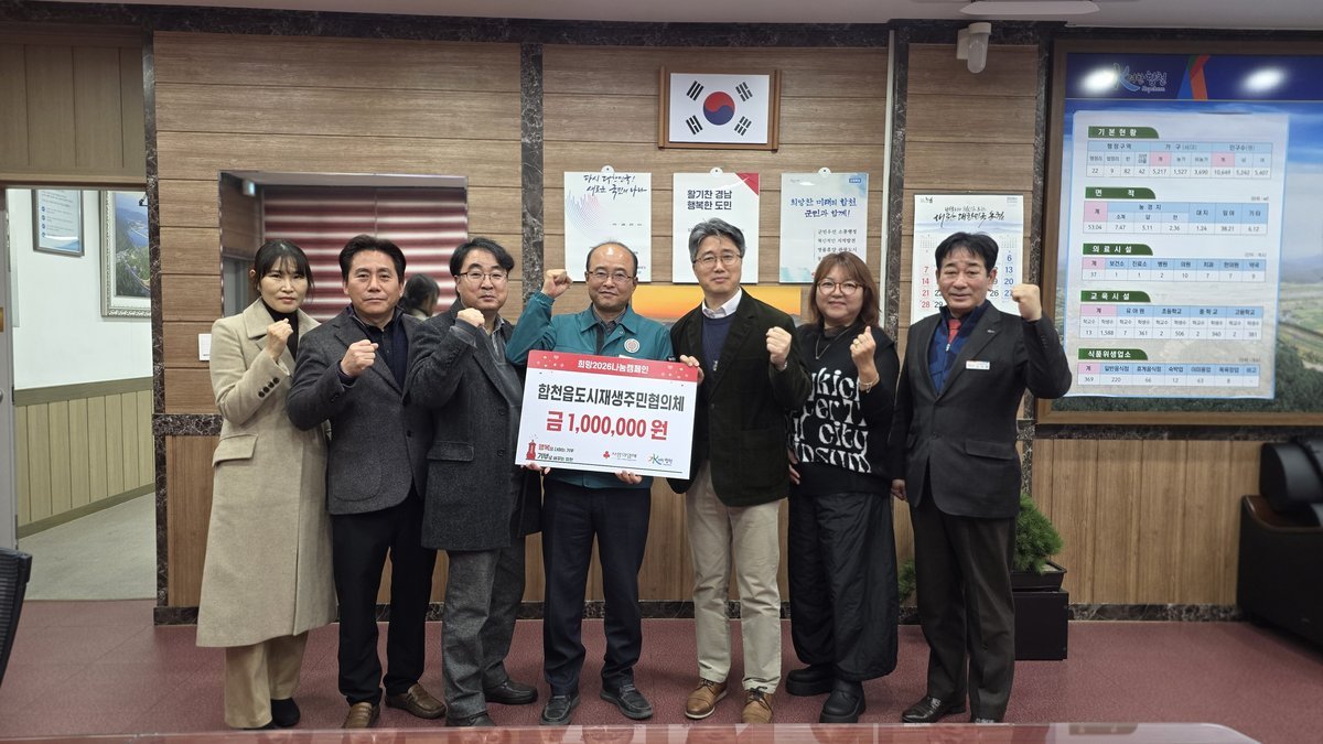이에 박재홍 합천읍장은 “연말연시를 맞아 이웃사랑을 실천해 주신 합천읍 도시재생 주민협의체에 깊이 감사드리며 기탁해 주신 성금은 도움이 필요한 이웃들에게 소중히 전달하겠다”고 밝혔다.