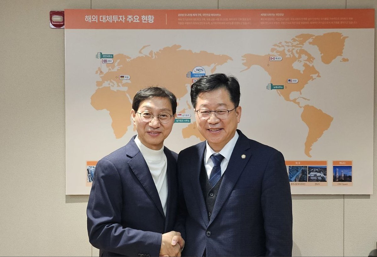 [한국Q뉴스] 지난 12월 23일, 안호영 국회 기후노동위원장은 전주 국민연금공단 본부에서 김성주 국민연금공단 이사장과 면담을 갖고 △퇴직연금공단 설립을 통한 ‘연금수도’완성 △정책형 주민참여 펀드 활성화 △AI 금융 기반 기본사회 전략 △혁신도시 정주여건 개선 등 전북 금융·연금 생태계 강화를 위한 협력 방안을 논의했다.