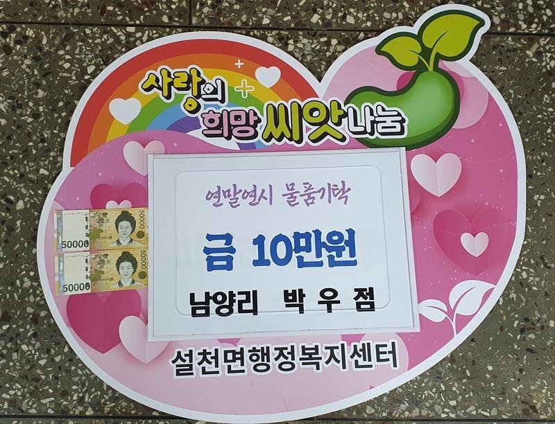 또한 남양리에 거주하는 이우점 어르신도 이웃돕기 성금 10만원을 기부하며 지역 내 나눔 활동에 동참했다.