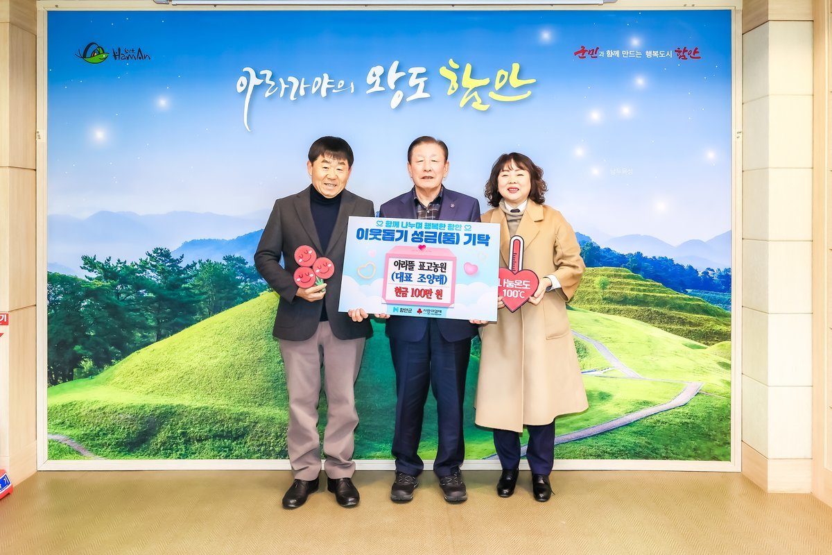 조근제 함안군수는 “희망2026나눔캠페인에 동참해 따뜻한 나눔을 실천해 주신 아라뜰표고농원에 감사드린다”며 “기탁해 주신 성금은 투명하고 공정하게 운영해 꼭 필요한 이웃에게 전달하겠다”고 전했다.