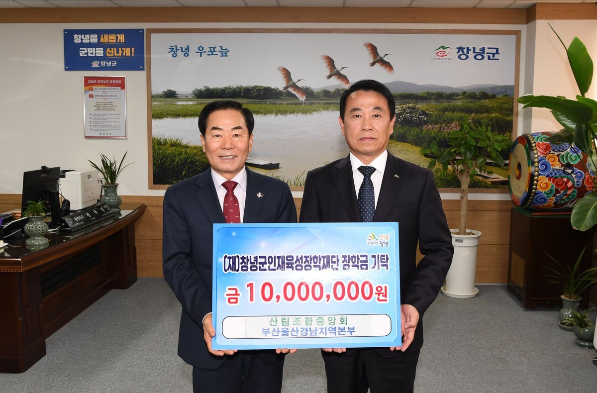 [한국Q뉴스] 산림조합중앙회 부산울산경남지역본부 지난 29일 창녕군인재육성장학재단에 지역 인재육성을 위한 장학금 1000만 원을 기탁했다.
