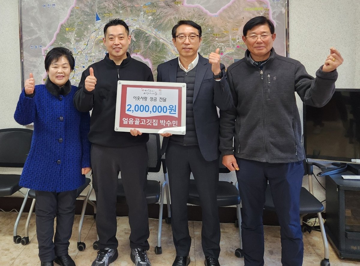 조정제 산내면장은 “매서운 한파가 찾아오는 시기에 지역사회를 위해 큰 나눔을 실천해 주신 박수민 얼음골고깃집 대표께 진심으로 감사드린다”라며 “전달해 주신 성금은 도움이 필요한 이웃들에게 잘 전달해 소외되는 분 없이 모두가 따뜻한 겨울을 보낼 수 있도록 꼼꼼히 살피겠다”라고 전했다.