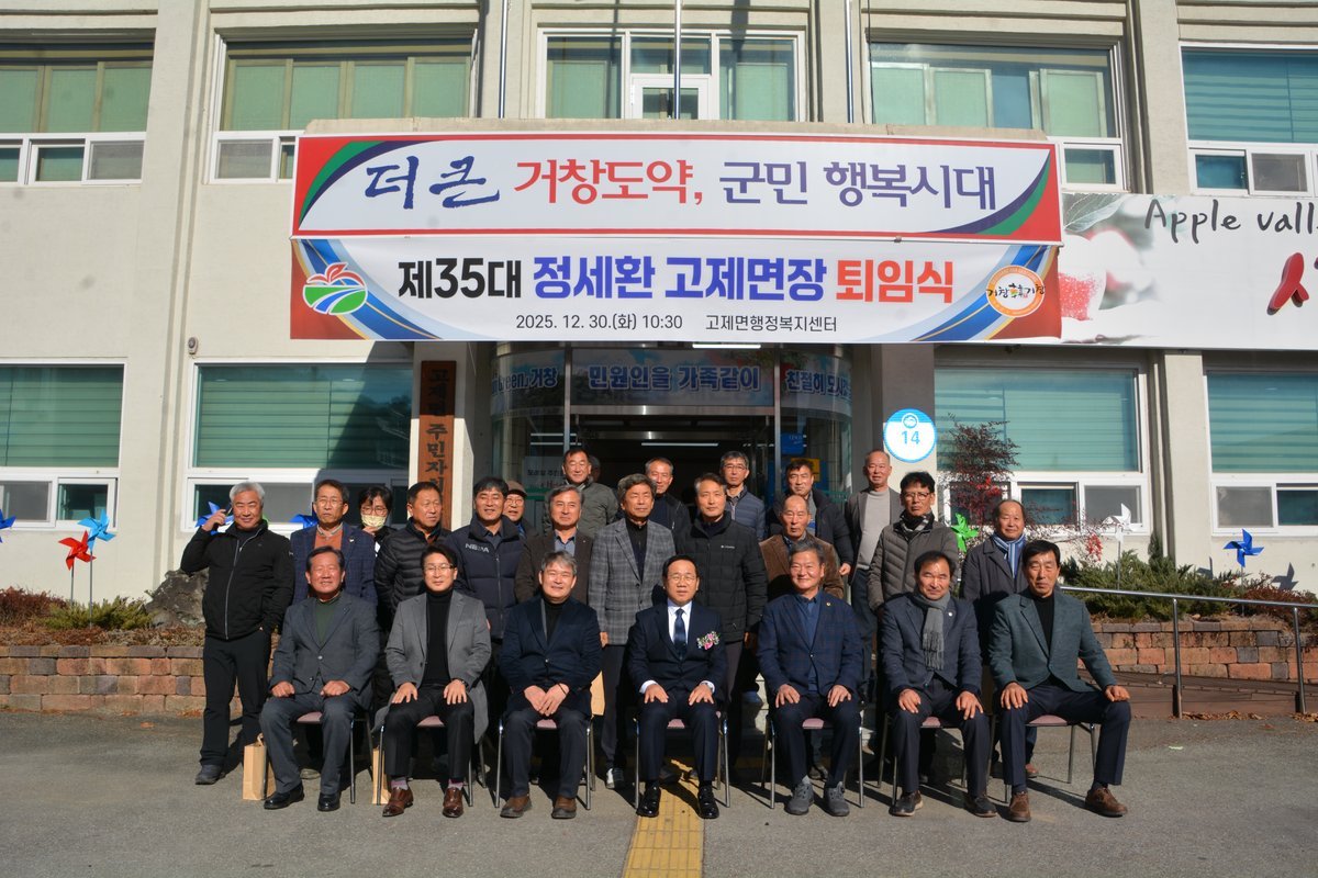 [한국Q뉴스] 거창군 고제면은 지난 30일 행정복지센터 2층 회의실에서 제35대 고제면장 퇴임식을 개최했다.