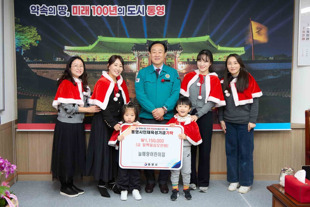 천영기 통영시장은 “늘해랑어린이집의 따뜻한 마음으로 몸은 추워도 마음만큼은 한없이 따뜻하다”“통영의 미래 100년의 주역인 우리 아이들이 자라나 지역을 사랑하고 꿈을 펼칠 수 있도록 인재육성사업에 소중히 사용하겠다”고 감사의 인사를 전했다.