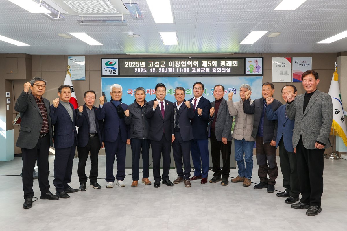 [한국Q뉴스] 고성군 이장협의회는 12월 29일 군청 중회의실에서 이상근 고성군수, 배삼태 지회장, 각 읍면 협의회장 등 16명이 참석하여 ‘2025년 고성군 이장협의회 제5회 정례회’를 개최했다.