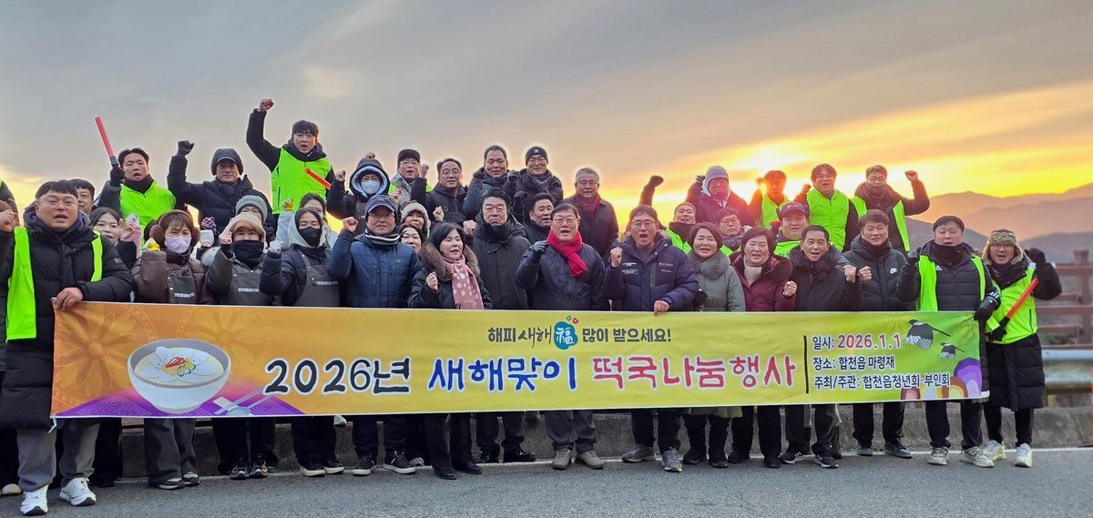 [한국Q뉴스] 합천읍청년회는 2026년 병오년 새해를 맞아 1월 1일 새벽 6시부터 합천읍 마령재 일원에서 ‘2026 해맞이 떡국 나눔 행사’를 개최했다.