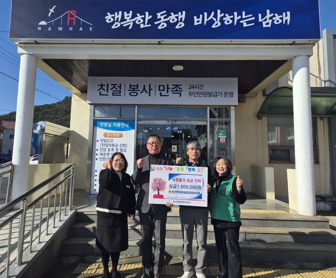 이번 성금 기탁은 지난 12월 24일 개최된 2025년 창선면 새마을 연말총회에서 회원 모두 의견일치로 결정된 사안으로, 기탁금은 경제적 어려움을 겪고 있는 취약계층과 복지사각지대 이웃을 위해 사용될 예정이다.