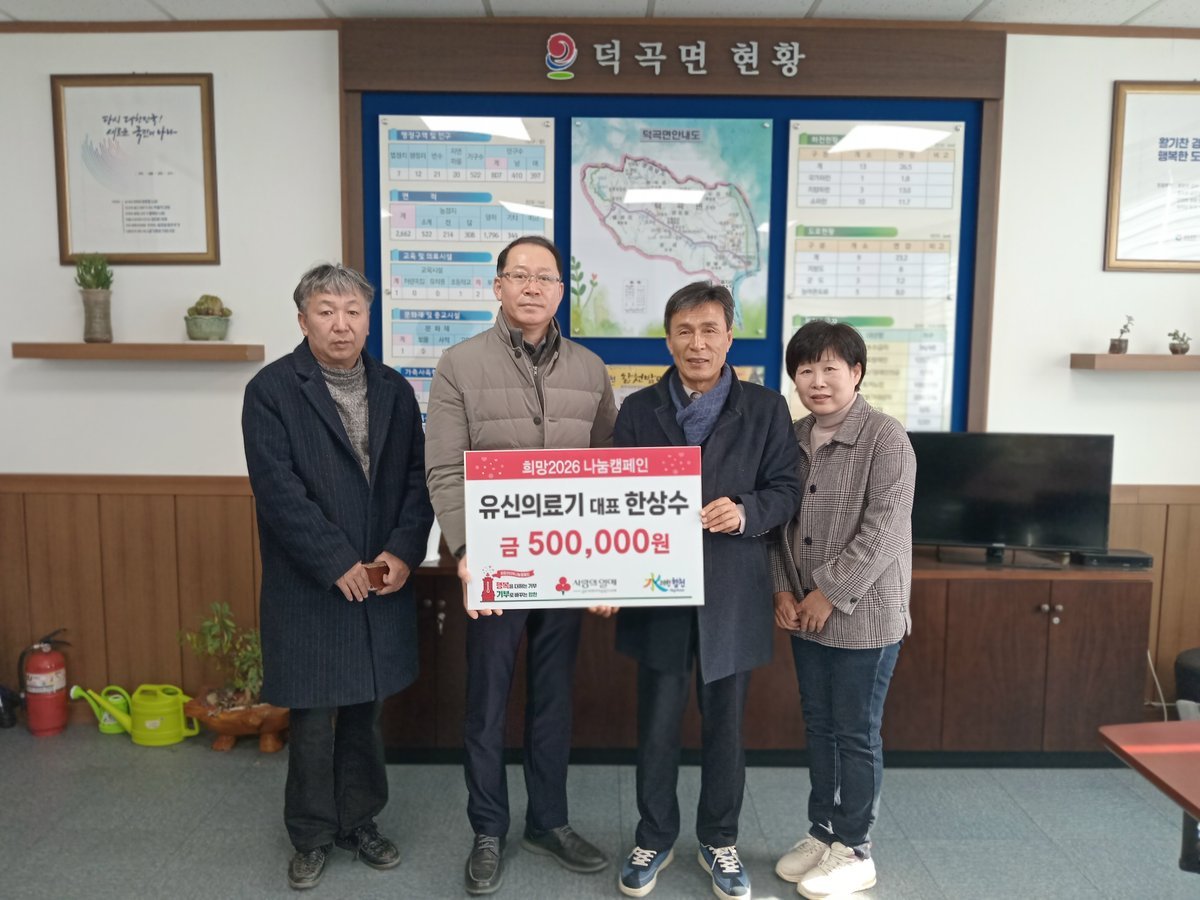 정상준 덕곡면장은 “성금에 감사드리며, 어려운 이웃이 따뜻한 겨울을 보낼 수 있도록 지원에 최선을 다하겠다”고 말했으며, 이번 성금은 경남사회복지공동모금회를 통해 실질적인 도움이 필요한 관내 어려운 이웃에게 전달될 예정이다.
