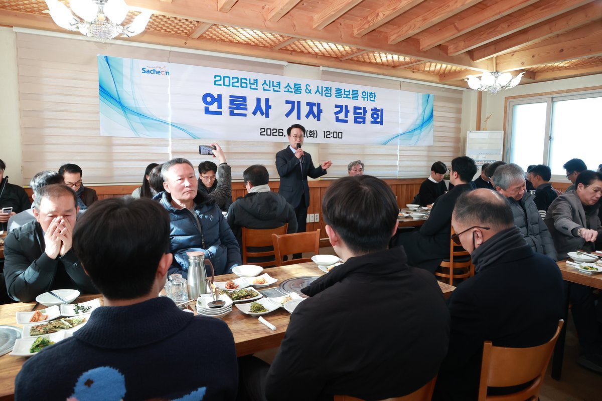 [한국Q뉴스] 사천시는 6일 용현면에 소재한 식당에서 2026년 새해를 맞아 언론과의 소통, 상생협력 강화를 위한 '2026년 신년 기자 간담회'를 개최했다.