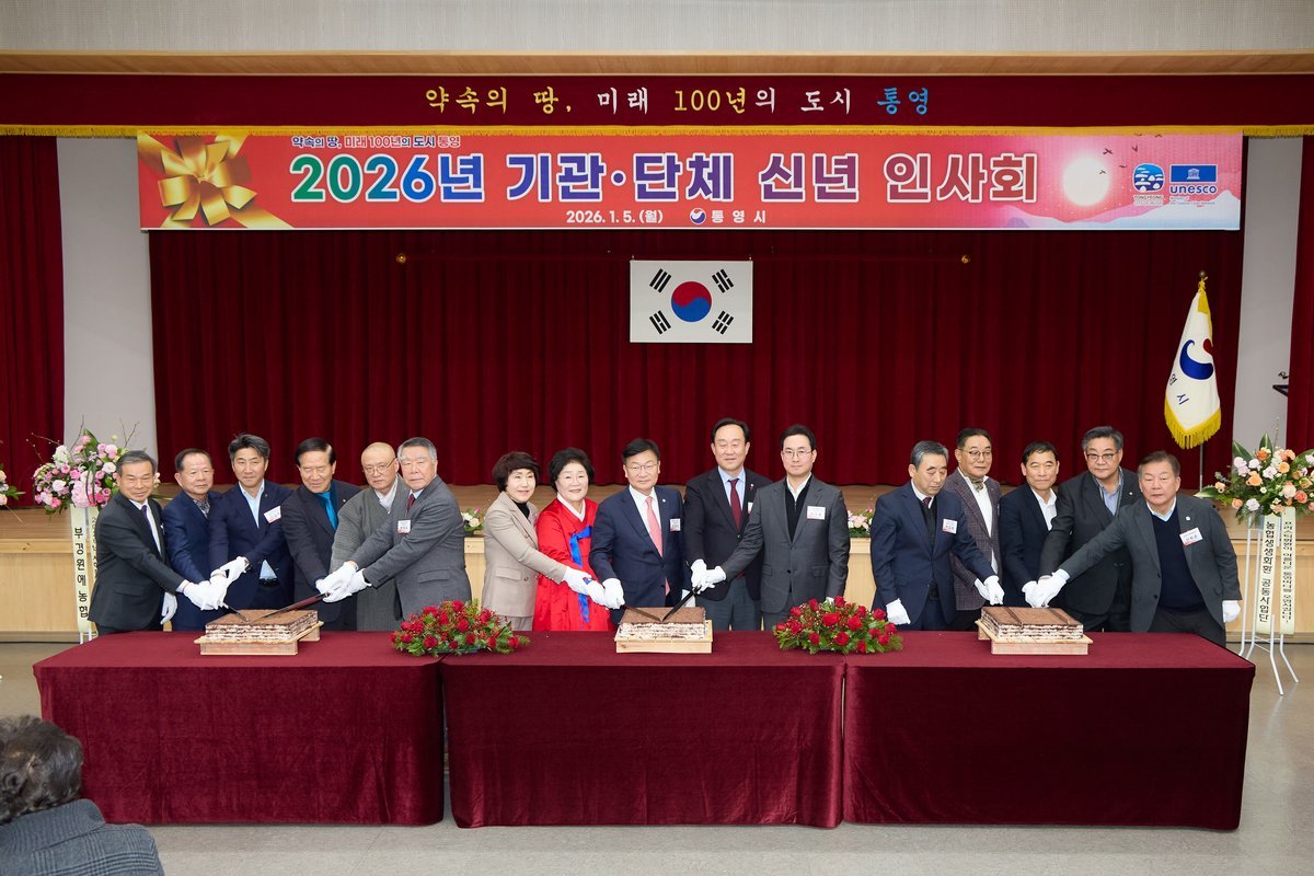 [한국Q뉴스] 통영시는 2026년 병오년 새해를 맞아 지난 5일 통영시청 강당에서 통영의 새로운 도약과 시민 화합을 기원하는 '2026년 통영시 기관ㆍ단체 신년 인사회'를 성황리에 개최하고 본격적인 새해의 시작을 힘차게 알렸다.