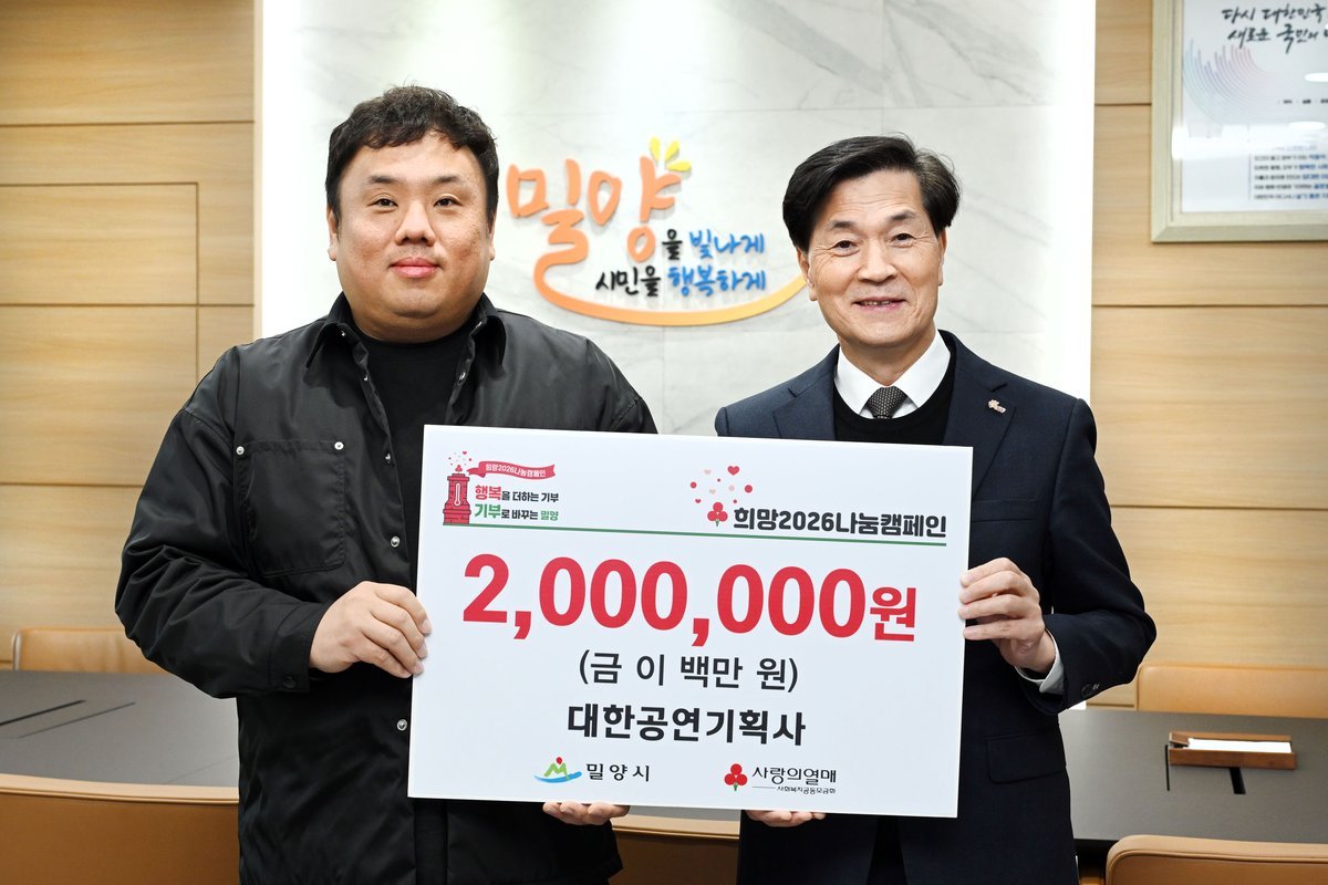 [한국Q뉴스] 대한공연기획사는 지난 6일 지역 내 취약계층을 돕기 위해 이웃돕기 성금 200만원을 경남사회복지공동모금회와 연계된 밀양시행복나눔펀드에 기탁했다.