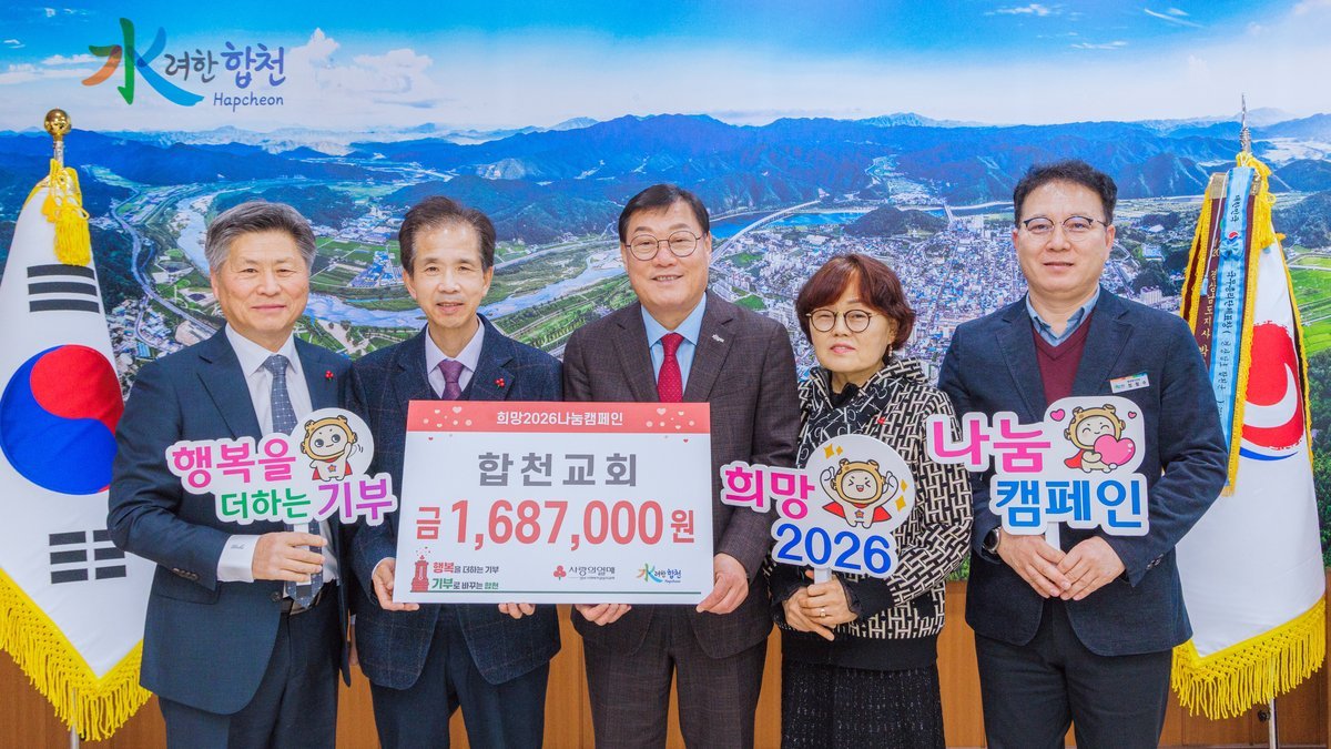 한편 합천군은 2025년 12월 1일부터 2026년 1월 31일까지 희망2026나눔캠페인 이웃돕기 성금 집중 모금 기간을 운영하고 있다.
