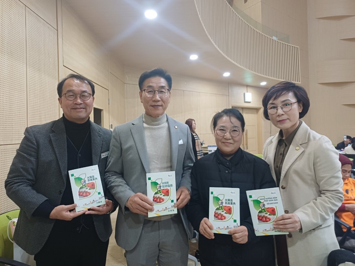 박수영 대양면장은 "민원안내책자는 지역 주민은 물론, 외국인 주민을 위한 행정서비스 길라잡이 역할을 하고 있다"며 "앞으로도 주민 눈높이에 맞춘 행정 서비스 제공과 다문화 주민의 지역사회 정착을 지원하기 위한 다양한 노력을 이어가겠다"고 밝혔다.
