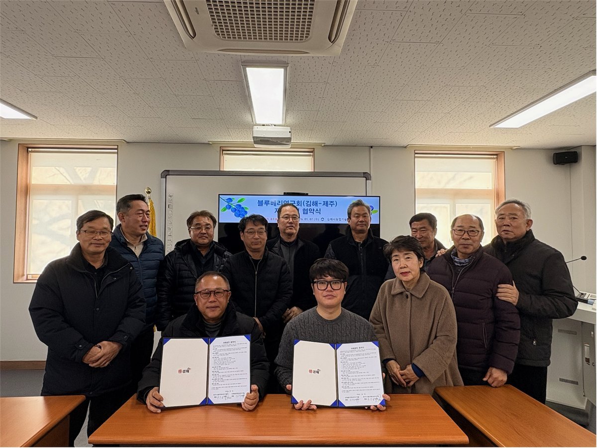 [한국Q뉴스] 김해농업기술센터에서 육성·관리하고 있는 김해블루베리연구회가 지난 7일 제주시블루베리연구회와 자매결연 협약을 체결하고, 블루베리 재배기술 및 유통·마케팅 정보 교류를 위한 상호 협력에 나섰다.