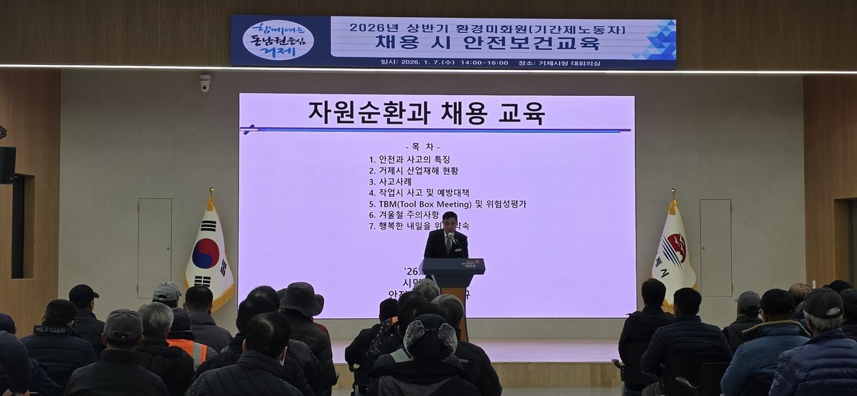 이번 교육은 2026년 상반기 거제시 전역에서 환경정비 업무를 수행하는 기간제 환경미화 노동자를 대상으로 진행됐다.