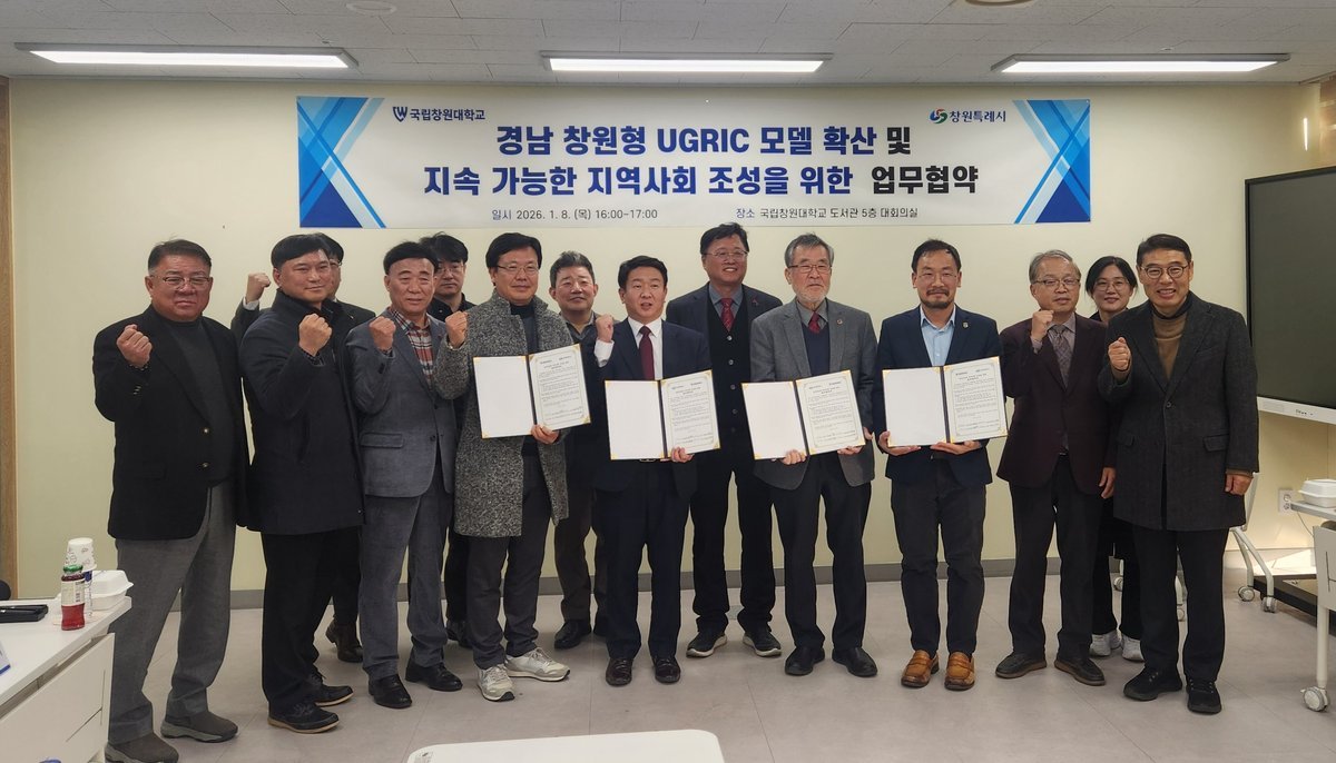 [한국Q뉴스] 창원특례시 주민자치회는 1월 8일 창원대학교 도서관에서 국립창원대학교 글로컬대학사업단·메이커아지트, 창원시지속가능발전협의회와 업무협약을 체결했다.