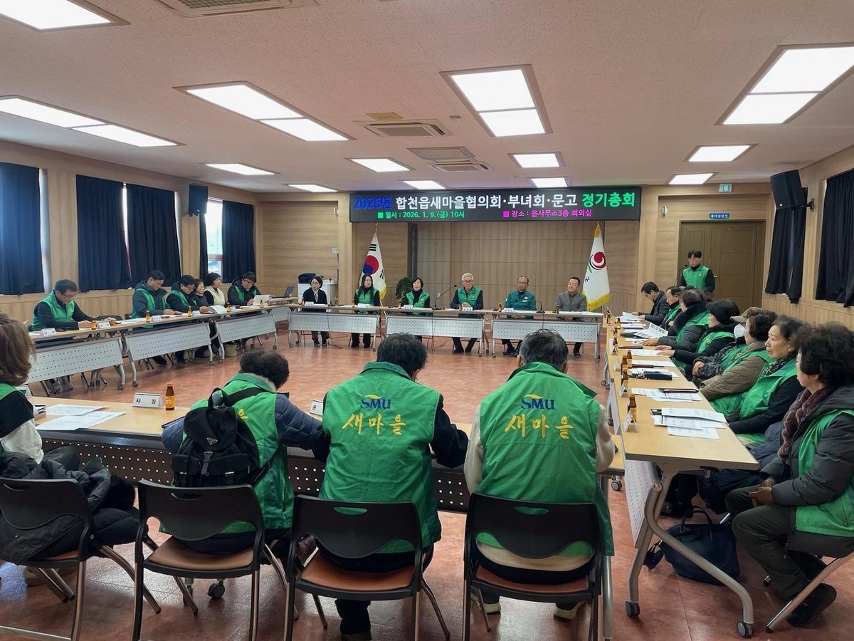 [한국Q뉴스] 합천읍새마을협의회·부녀회는 9일 합천읍사무소 3층 회의실에서 박재홍 합천읍장, 정성철 새마을운동합천군지회장, 이현옥 합천군새마을문고회장, 심현여 합천읍새마을문고회장, 합천읍 새마을협의회·부녀회 회원 등 40여 명이 참석한 가운데 2026년 첫 정기총회를 개최했다.